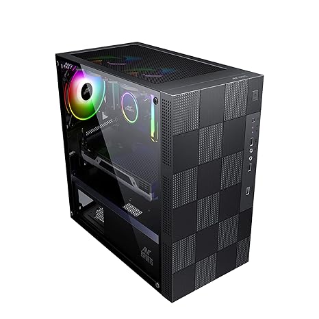 Ant Esports Elite 1000 TG Mid-Tower Computer Case/Gaming Cabinet – Black | Supports M-ATX, ITX with Pre-Installed 1 x 120mm Black Rear Fan