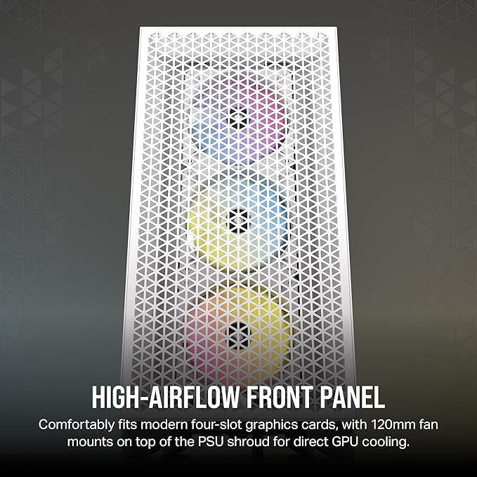 Corsair Alloy Steel 3000D RGB Airflow Mid-Tower Pc Case-White-3X Ar120 RGB Fans-Four-Slot Gpu Support Fits Up to 8X 120Mm Fans-High Airflow Design