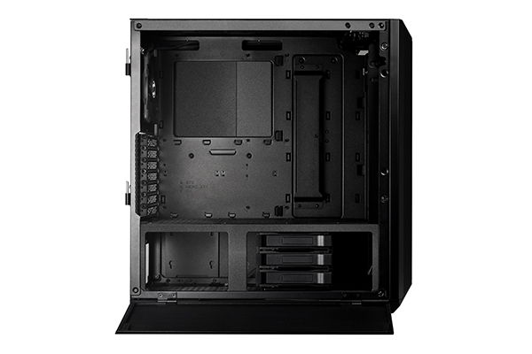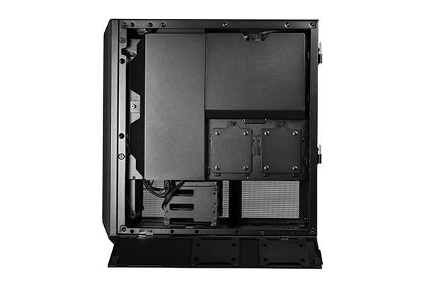 Behind MB Tray: 2 x 2.5″ SSDBehind the right flip panel: 2 x 2.5”SSD Hard Drive Cage: 3 x 3.5″ HDD/2.5″ SSD Above PSU Chamber: 2 x 2.5″ SSD |