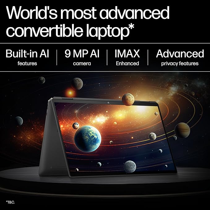 HP Spectre x360 AI Laptop, Intel Ultra 7 155H, 12 TOPS, 32GB DDR5, 2TB SSD, (Win 11, Office 21, Black, 2kg), Touchscreen, 2.8K, OLED, 16-inch(40.6cm), Intel Arc graphics, 9MP camera, Backlit, aa0665TU