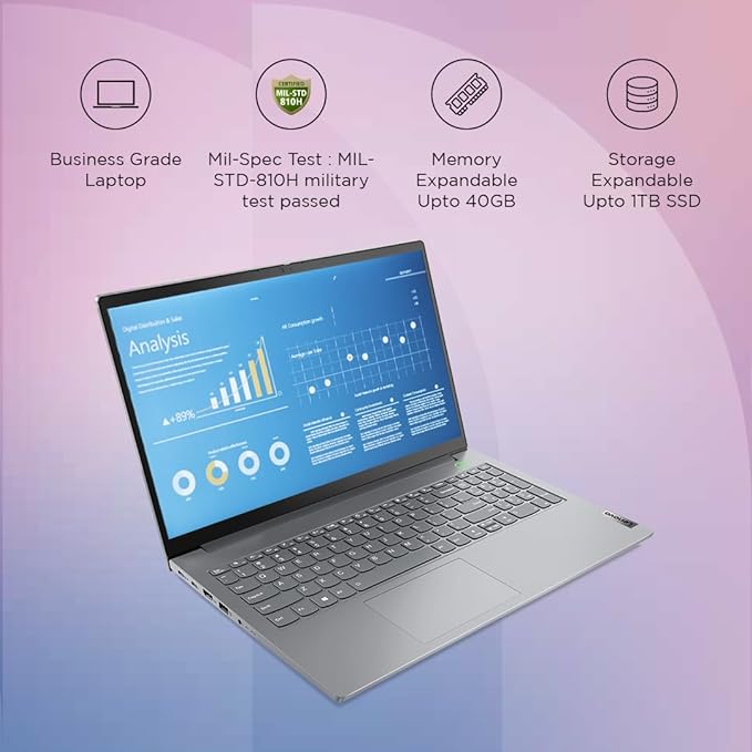 Lenovo ThinkBook 15 Intel Core i5 12th Gen Processor Antiglare Thin and Light Laptop (16GB RAM | 512GB SSD | Windows 11 Home | Office 2021 | Backlit Keyboard | Mineral Grey | 1.7 Kg)15.6" (39.62cm) FHD Display