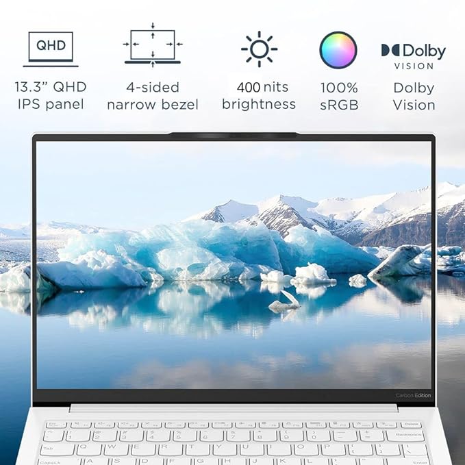 Lenovo Yoga Slim7 Carbon Touch Laptop (Intel Evo i7 1260P Gen Processor | 16GB RAM | 1TB SSD | Windows 11 | Office 2021 | Backlit KB IR Cam | 1Yr Warranty Alexa | Moon White | 1kg) 13.3"(33.78cm) QHD