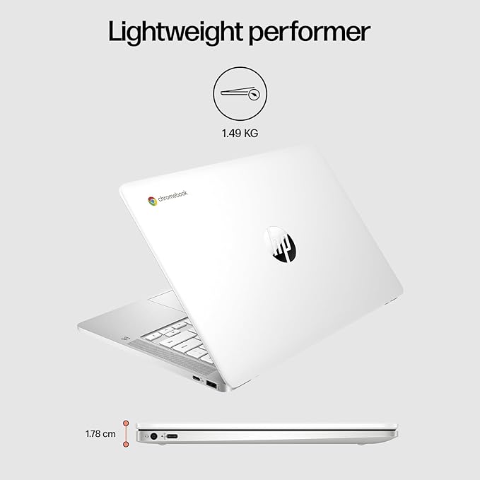 (Refurbished) HP Chromebook x360 Thin & Light Laptop (Intel Celeron N4120 | 4GB LPDDR4 | 64GB eMMC | Intel UHD Graphics | Dual Speakers | BrightView Display | Chrome 64 | White | 1.49 kg | White)14-inch (35.6 cm) Display