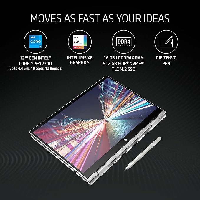 (Refurbished) HP ENVY x360 2-in-1 Laptop (intel core i5 12th Gen Processor | 16GB RAM | 512GB SSD | B&O | Intel Iris Xe Graphics | Windows 11 | MSO | Alexa | Pen | 1.32Kg | Natural Silver) 13.3inch(33.8cm) Display