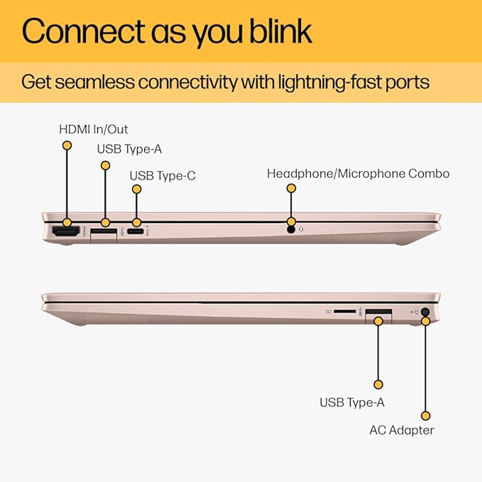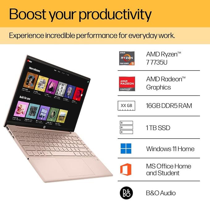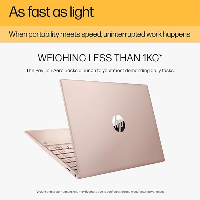 (Refurbished) HP Pavilion Aero WUXGA IPS Micro-Edge Laptop (AMD Ryzen 7 7735U Gen Processor | 16GB RAM | 1TB SSD | AMD Radeon Graphics | Windows 11 | MSO | Backlit Keyboard | B&O | FPR | Alexa | Rose Gold | 970 Grams) 3.3 inch(33.8cm) Display